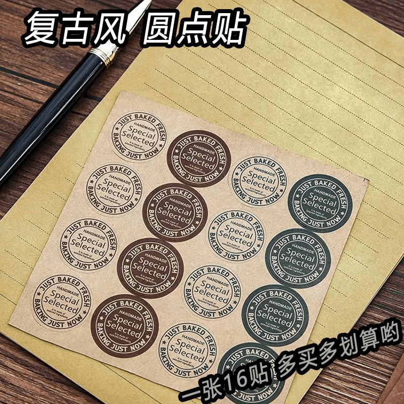 Adesivos redondos de papel kraft, para decoração de álbuns e embalagens