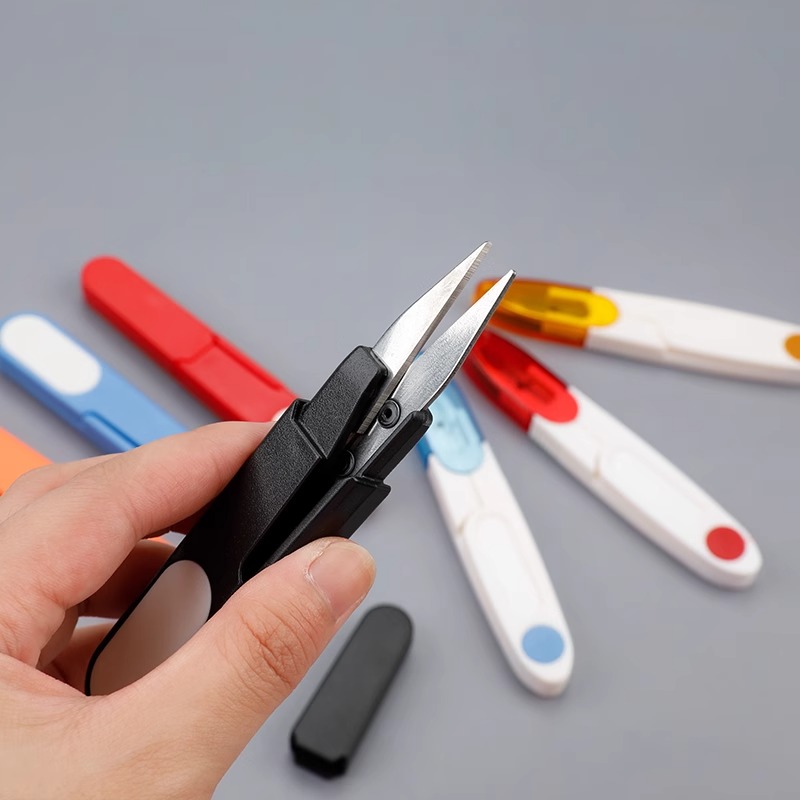 Ferramenta de DIY para bordado - tesoura em forma de U com tampa transparente, mini tesoura colorida da Coreia
