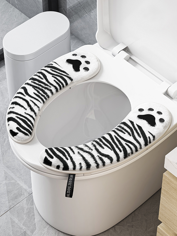 Protetor de vaso sanitário, adesivo, lavável, universal, de pelúcia, para aquecer e proteger