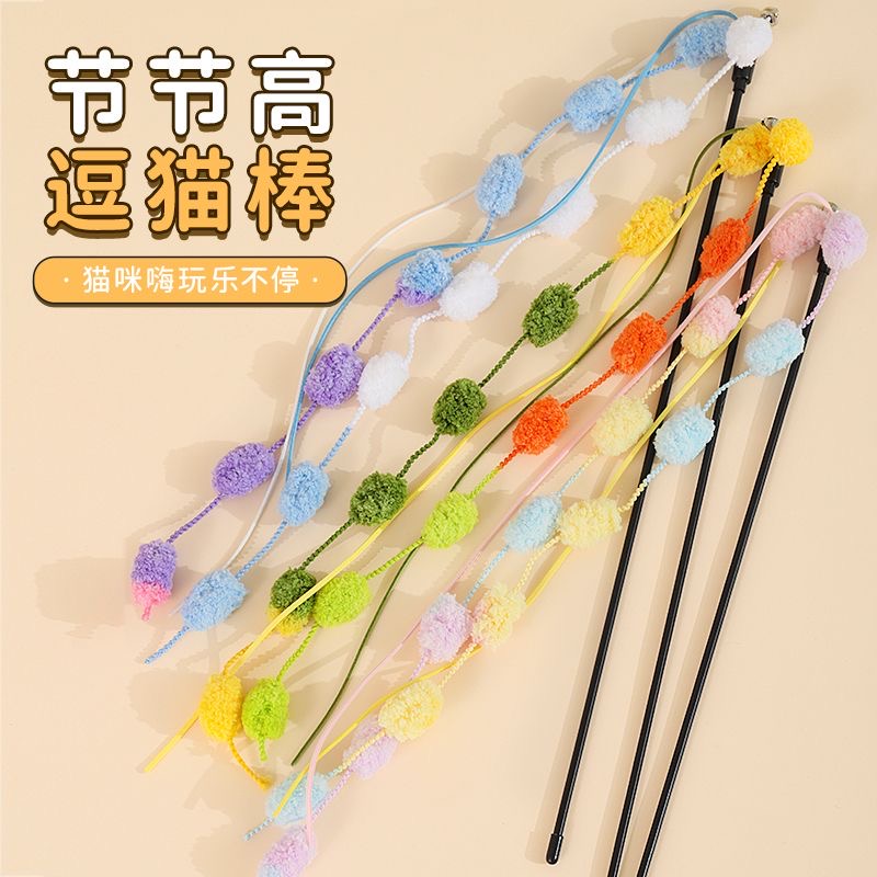 Varinha de brincar para gatos, com sinos e pompons, brinquedo interativo para gatos