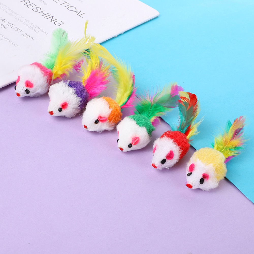 Brinquedo para gatos, rato de pelúcia com penas coloridas