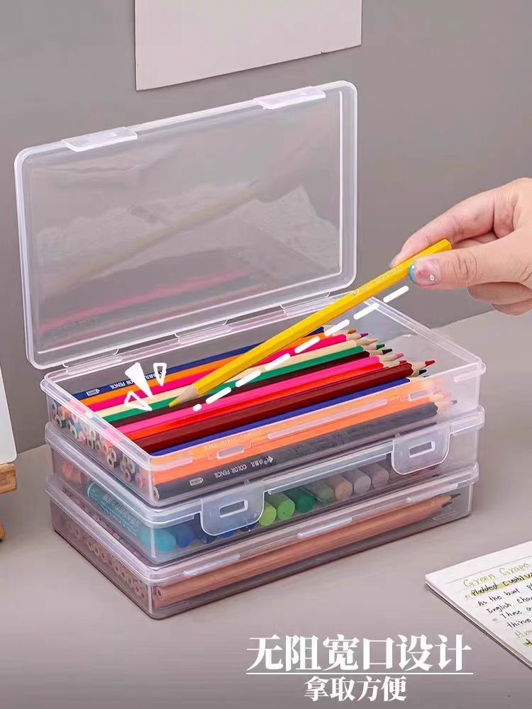 Caixa de armazenamento de material escolar, grande capacidade, caixa de lápis transparente
