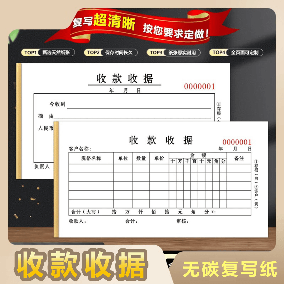 Receituário em papel carbono, recibos de múltiplas cópias, personalização de recibos de pagamento