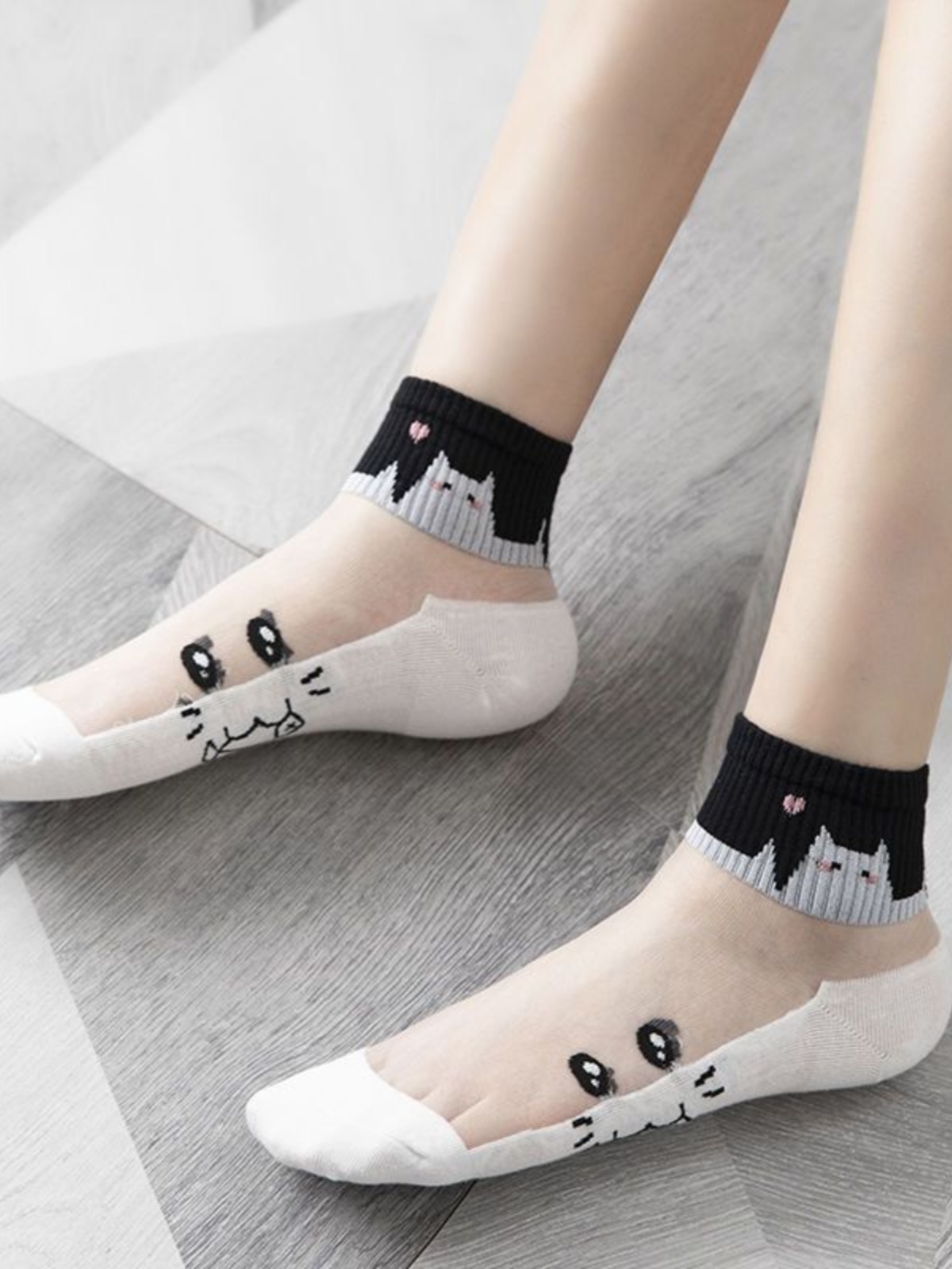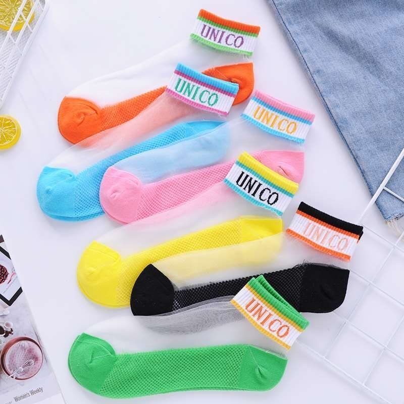 Meias femininas curtas, estilo coreano, meias de cristal transparentes