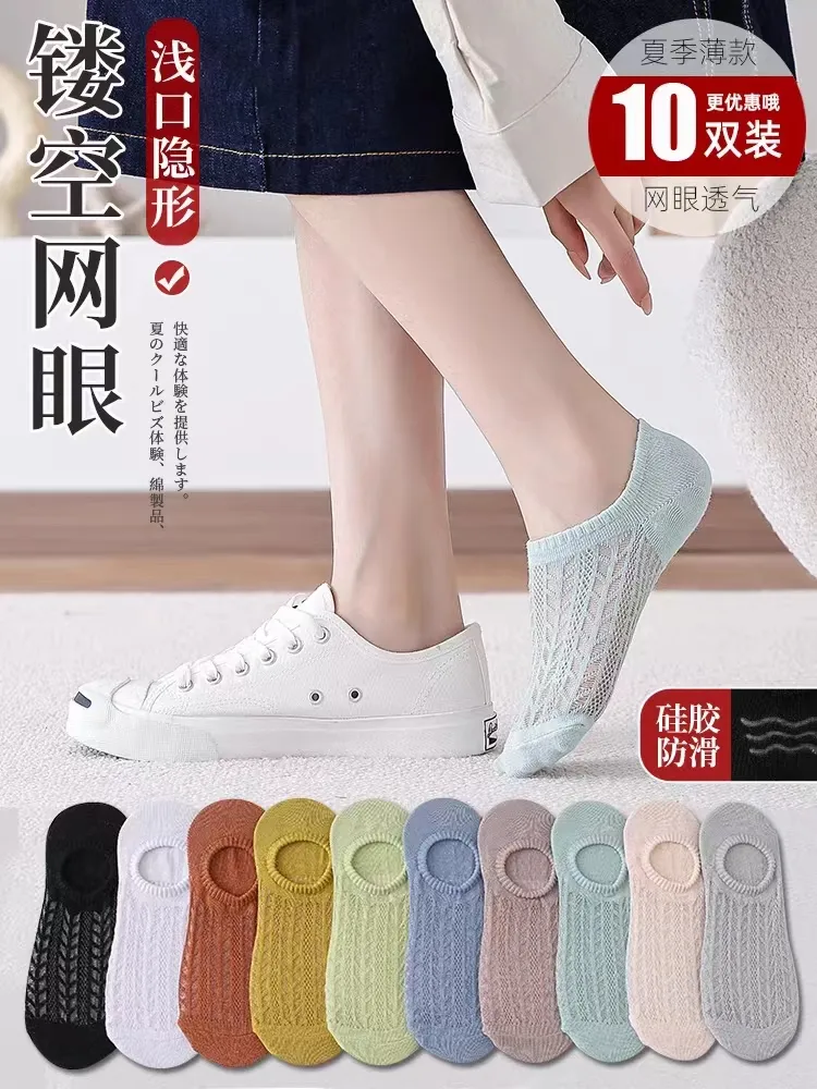 Meias femininas, curtas e antiderrapantes, para primavera e verão