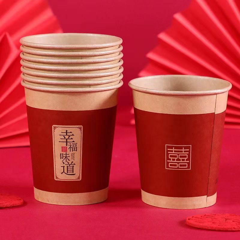 Одноразовые бумажные стаканчики для свадьбы, оптовая продажа, красные праздничные стаканы