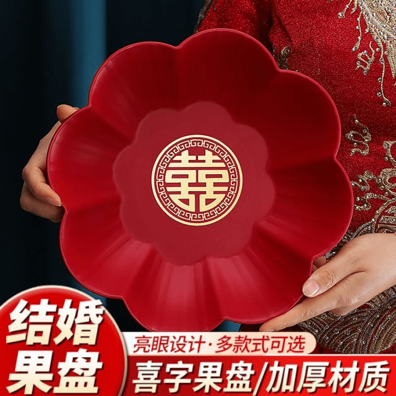 Свадебная тарелка для конфет, красная, праздничная, для новобрачных