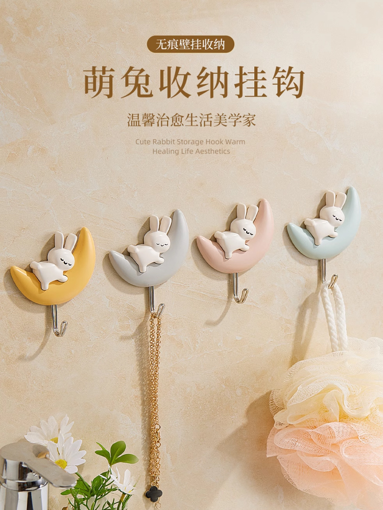 Крючок в виде кролика, самоклеящийся, для ванной, общежития, милый