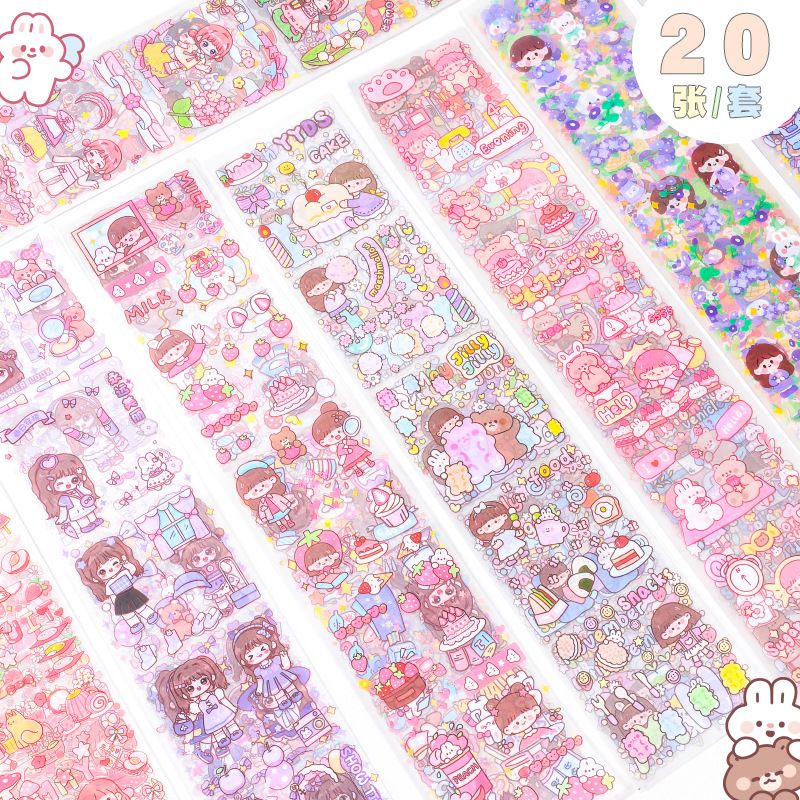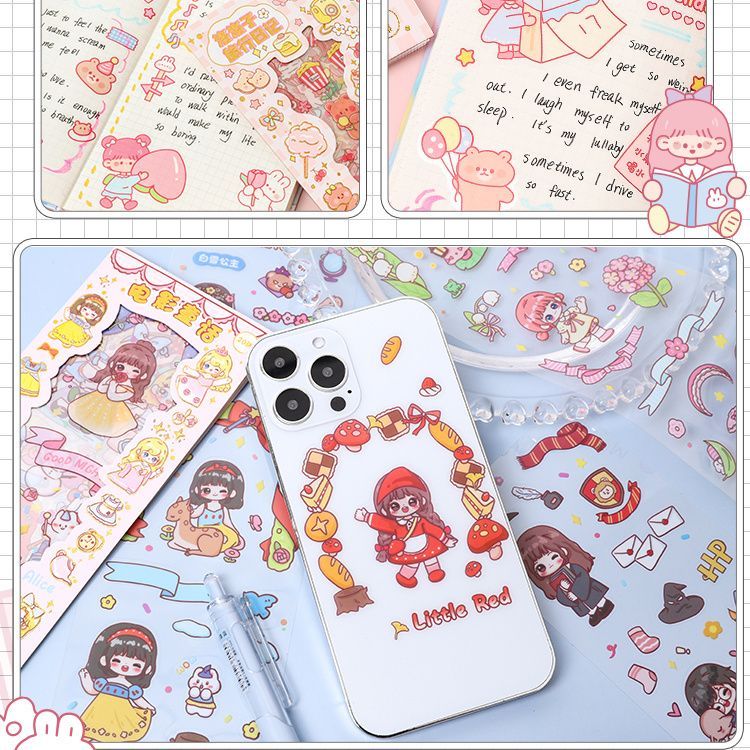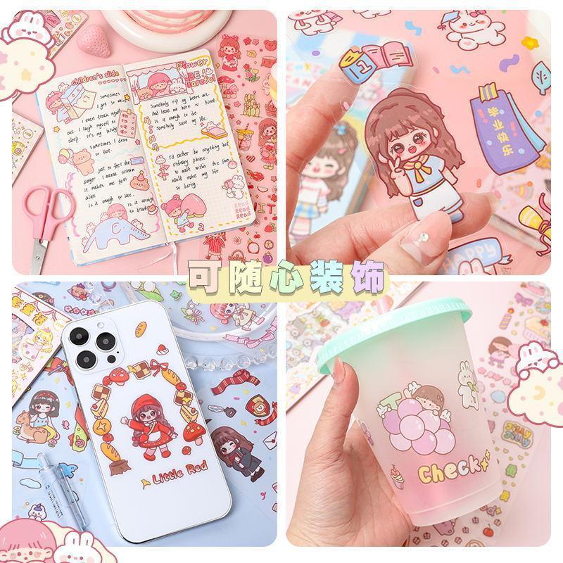 100 наклеек с мультяшными персонажами для девочек, милые декоративные наклейки для блокнотов, прозрачные и водонепроницаемые