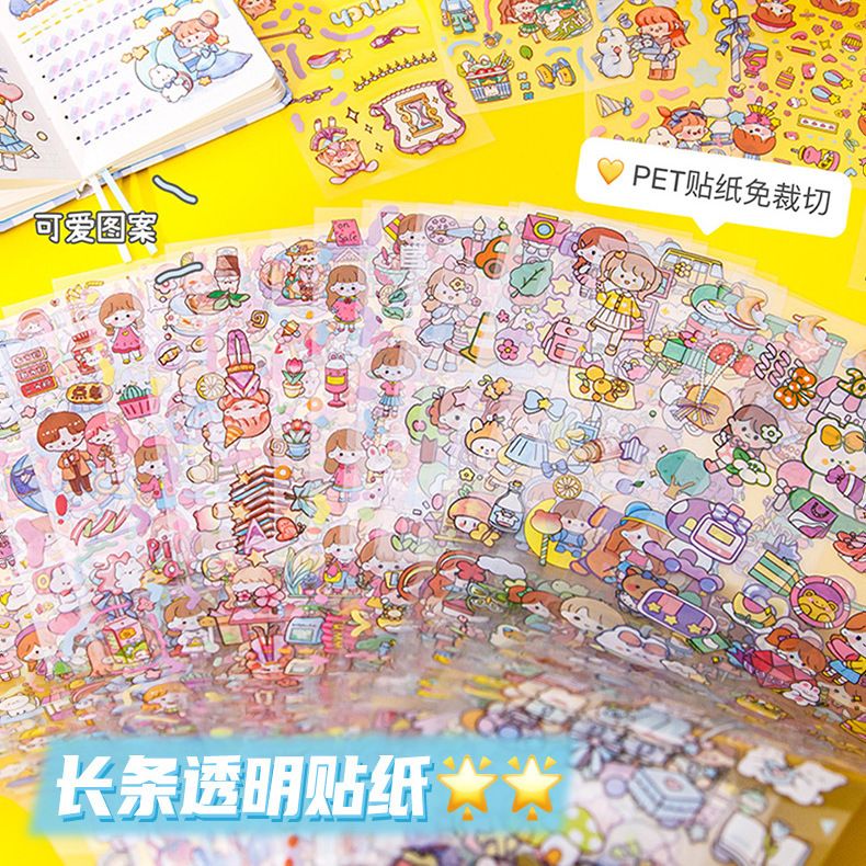 100 Cartoon Stickers for Kids Girls Guka Hand Account Long Strip Stickers Cute Decoration Pet Guka Transparent Waterproof quantity