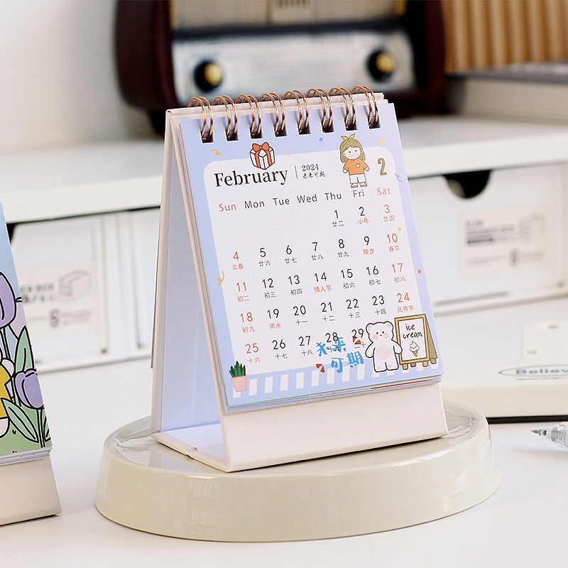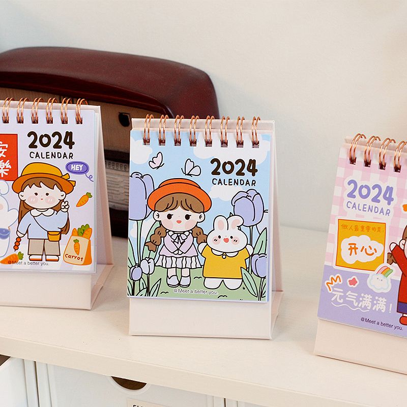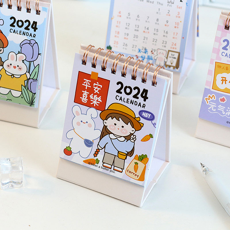 2024 Cute Mini Fruit Text Desk Calendar Student Bedroom Desktop Coil Calendar Simple Small Ornament Monthly Calendar quantity