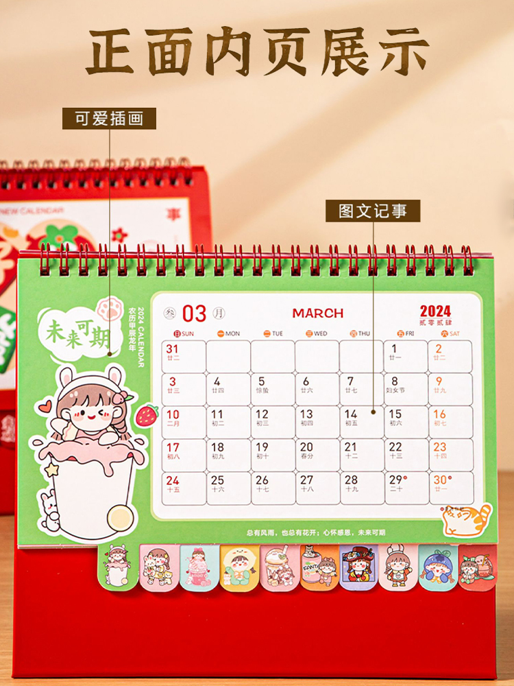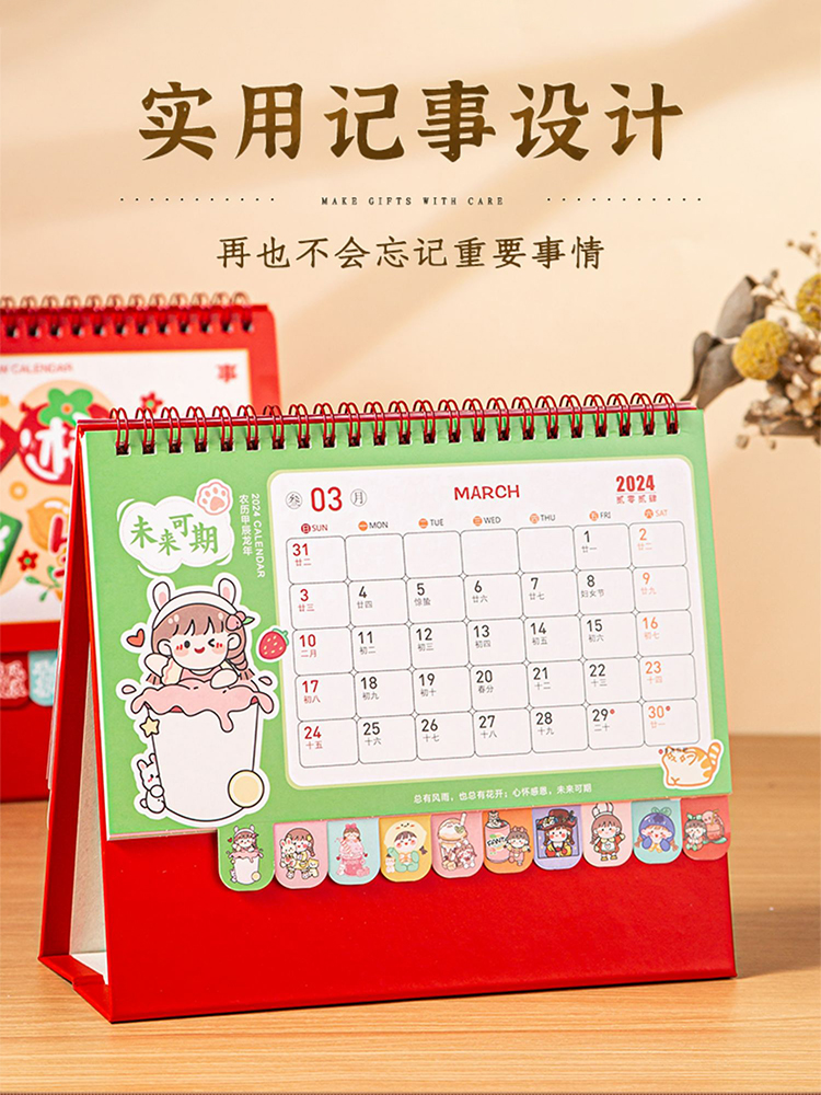 2024 New Cartoon Cute Desktop Calendar, Creative Inspirational Monthly Planner quantity
