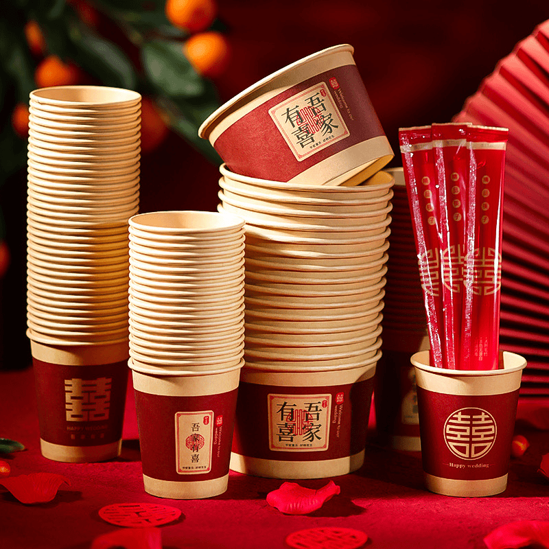 50 бумажных стаканов для свадьбы, одноразовые, экологически чистые