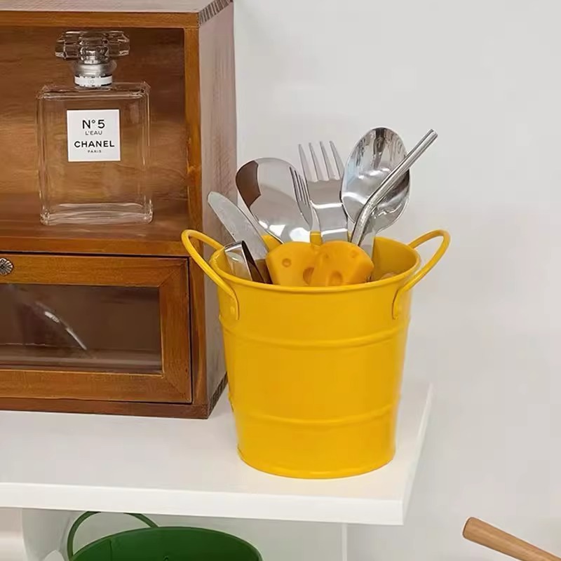 American Retro Pen Holder INS Large Capacity High-Quality Large Iron Bucket Desktop Office Stationery Makeup Brush Storage quantity