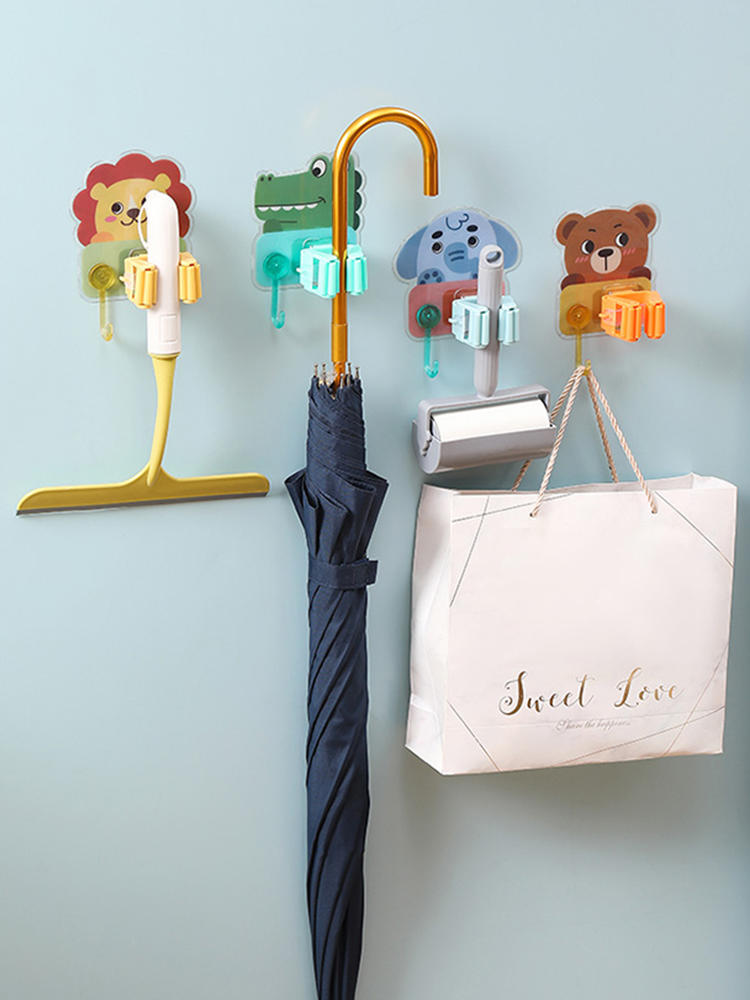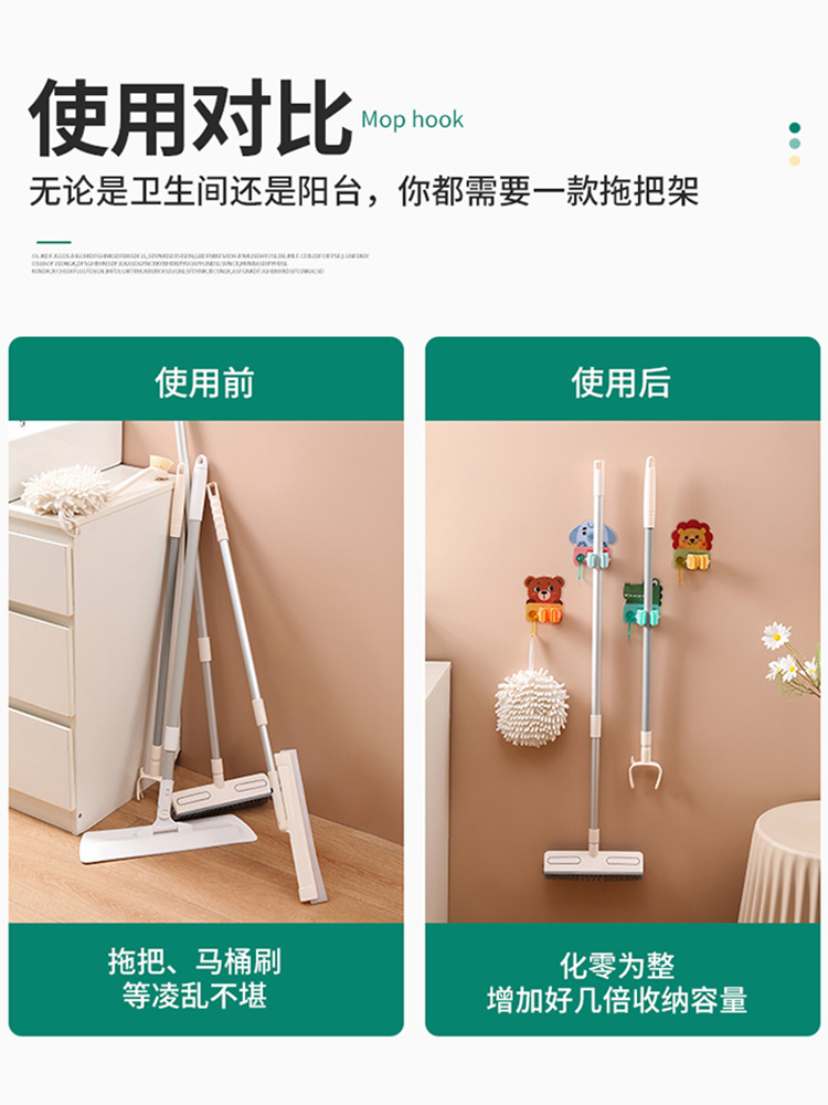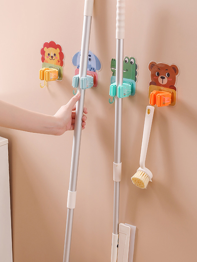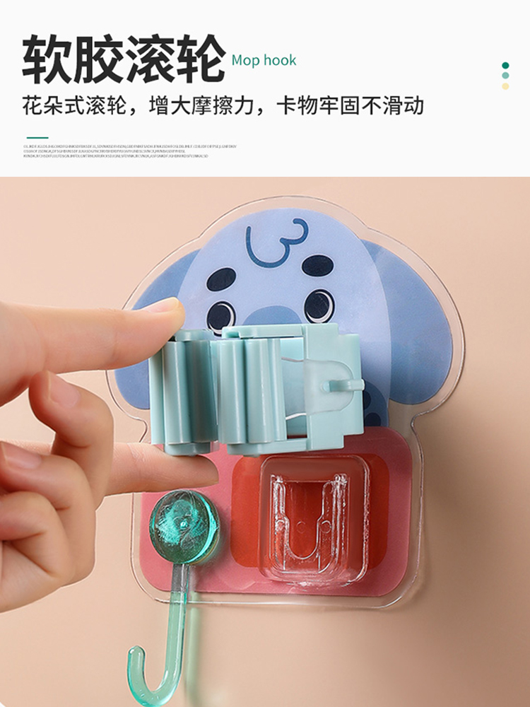 Animal Mop Rack No-Drill Bathroom Mop Holder Mop Hook Strong Wall-Mounted Fixed Clip quantity