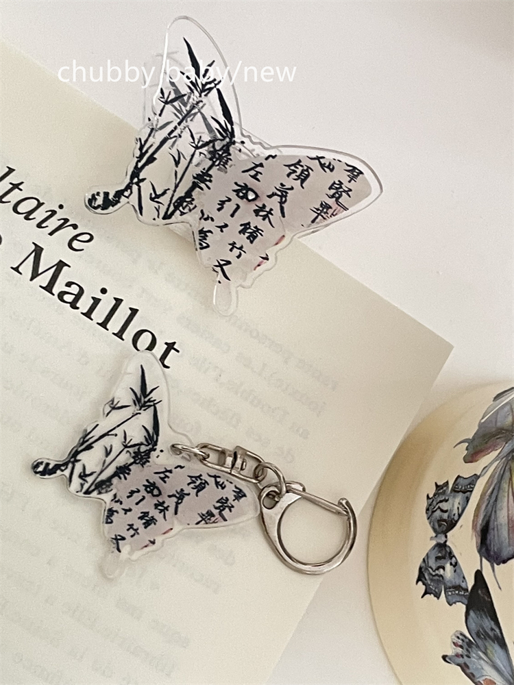 Beautiful Chinese Style Retro Calligraphy Butterfly Scorched Character Notebook Keychain PP Clip quantity