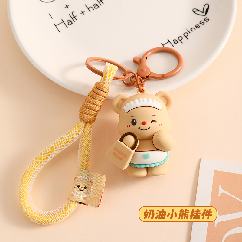 Мягкая игрушка медвежонка с маслом и кремом, брелок, новинка 2024 года, милый аксессуар для рюкзака, ключница
