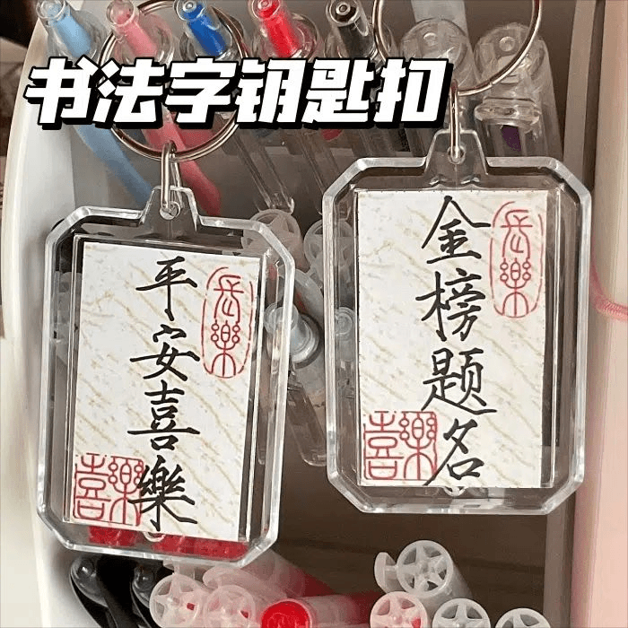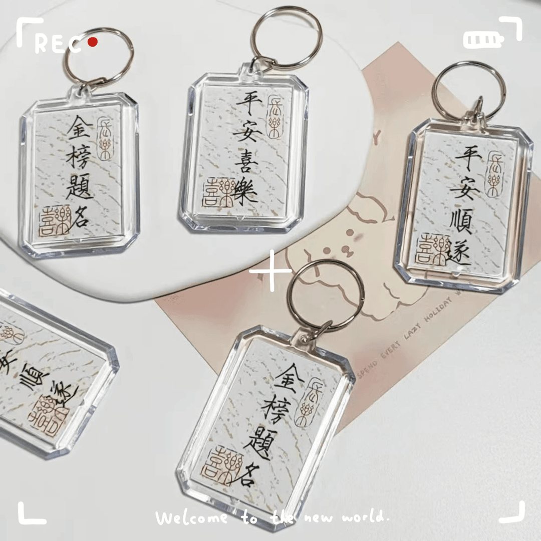 Calligraphy Keychain Peace and Joy Keychain Original National Style Small Script Keychain Accessory quantity