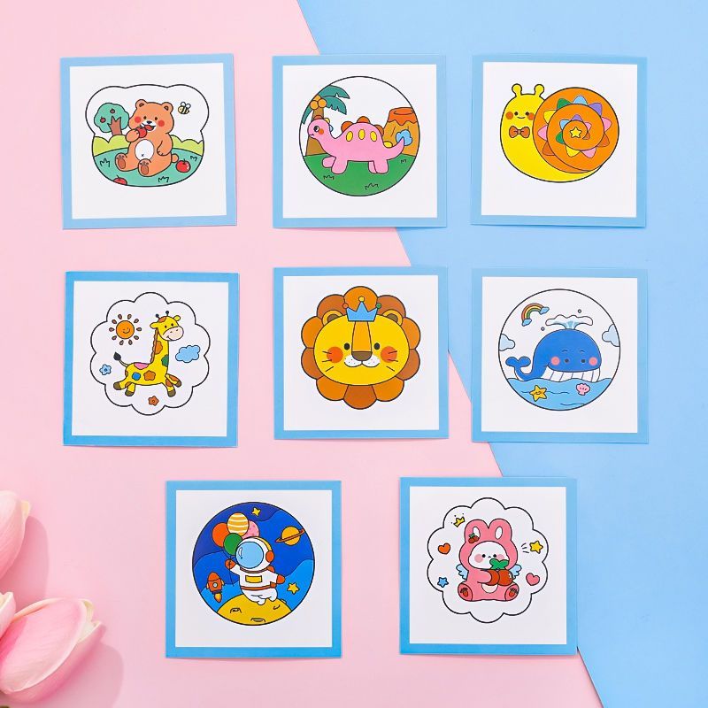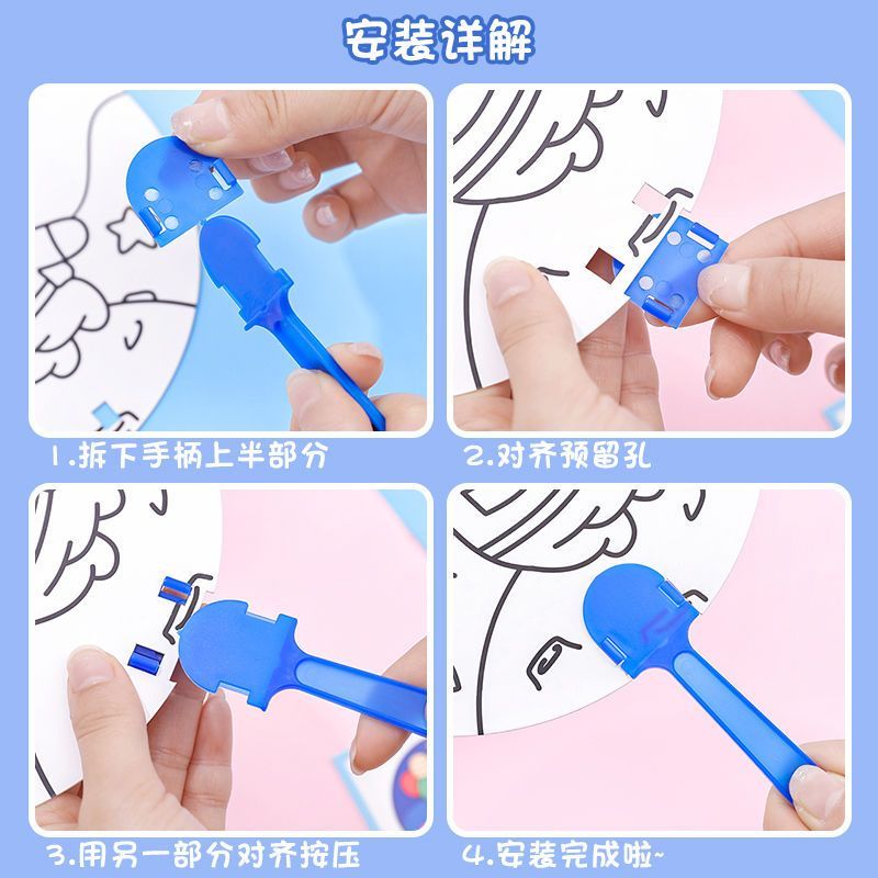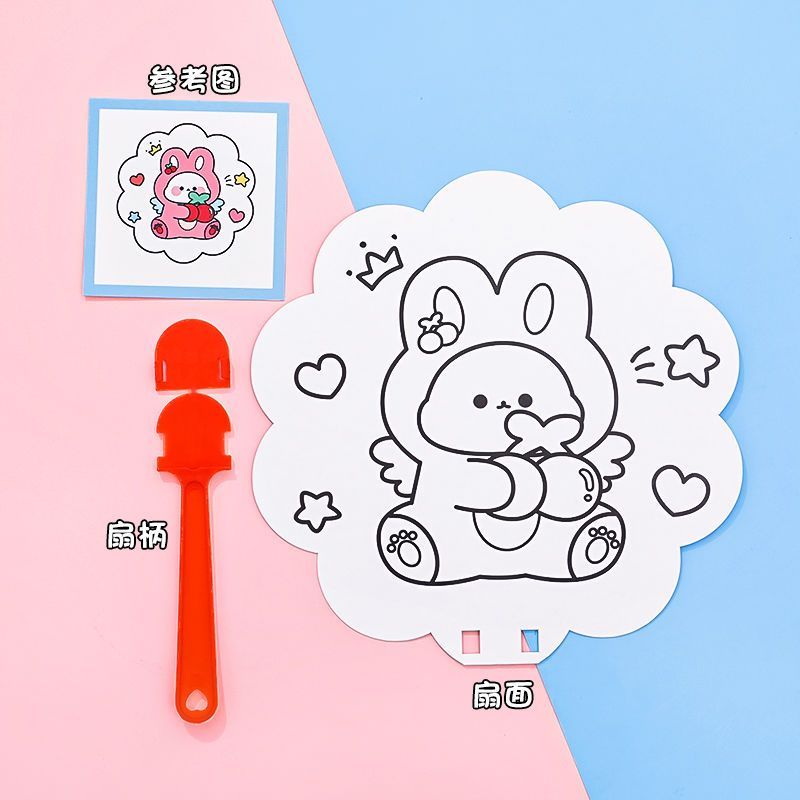 Children's DIY Fan, Blank Cartoon Painting Round Fan, Kindergarten Coloring Hand-Painted Material, Student Prize quantity