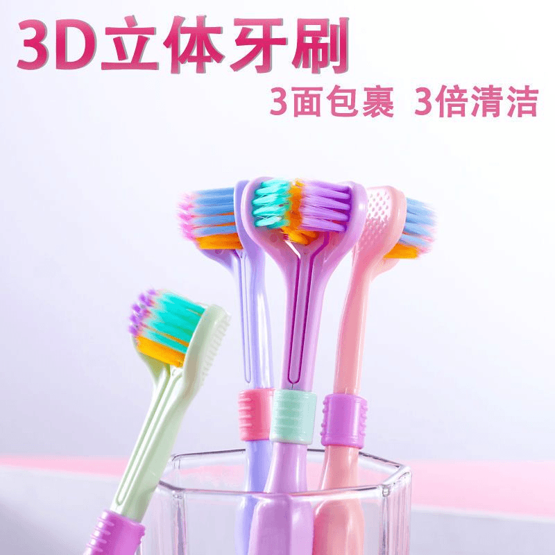 Зубная щетка с 3 сторонами [Фиолетовый Зеленый Розовый] 3 упаковки Тройная эффективная очистка / Мягкие щетинки / Бережно к деснам