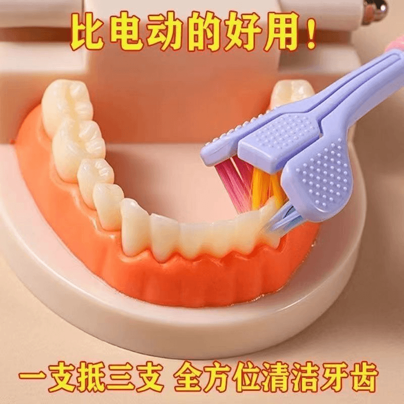 Зубная щетка с 3 сторонами [Фиолетовый Зеленый Желтый] 3 упаковки Тройная эффективная очистка / Мягкие щетинки / Бережно к деснам
