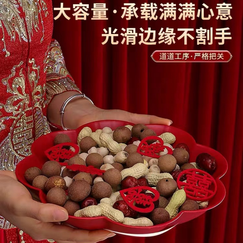 Chinese Wedding Celebration Plate Wedding Fruit Plate Home Dried Fruit Plate Wedding Chinese Plate Red Plastic Candy Sunflower Seeds quantity
