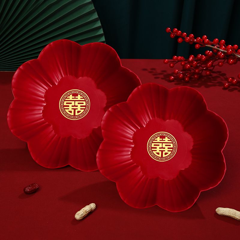 Китайская свадебная тарелка для фруктов, красная, пластиковая