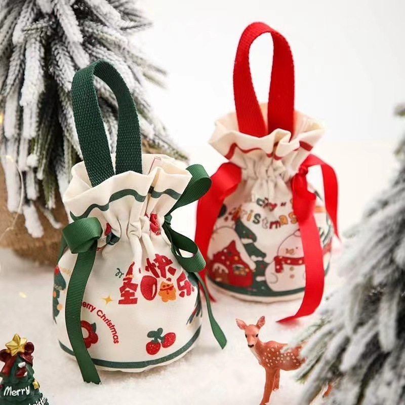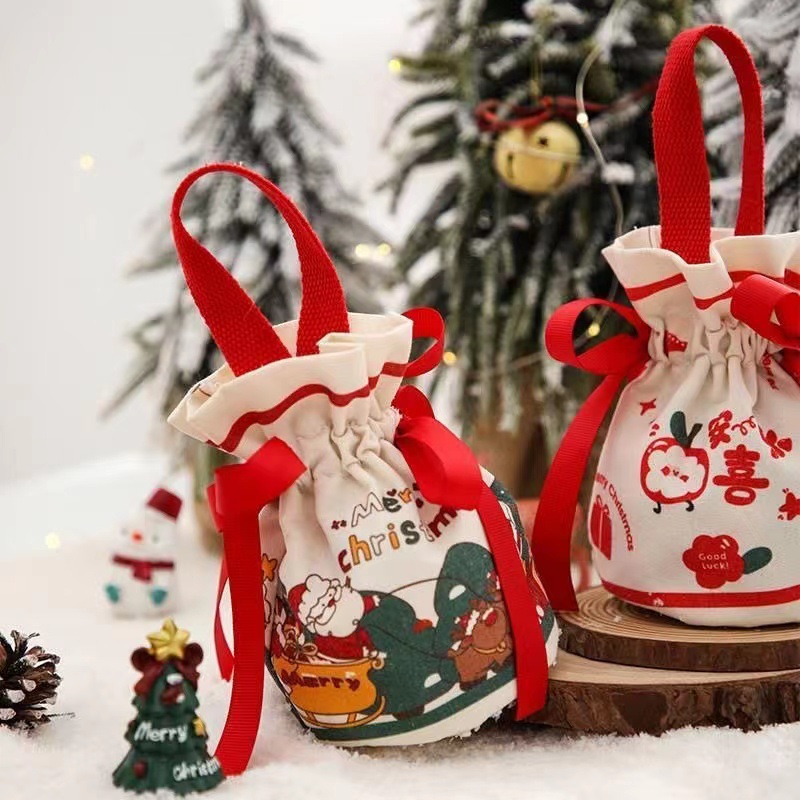 Christmas Gift Peace Night Souvenir Small Gift Handheld Snowflake Crisp Candy Bag Canvas Drawstring Bag Flat Apple Bag quantity