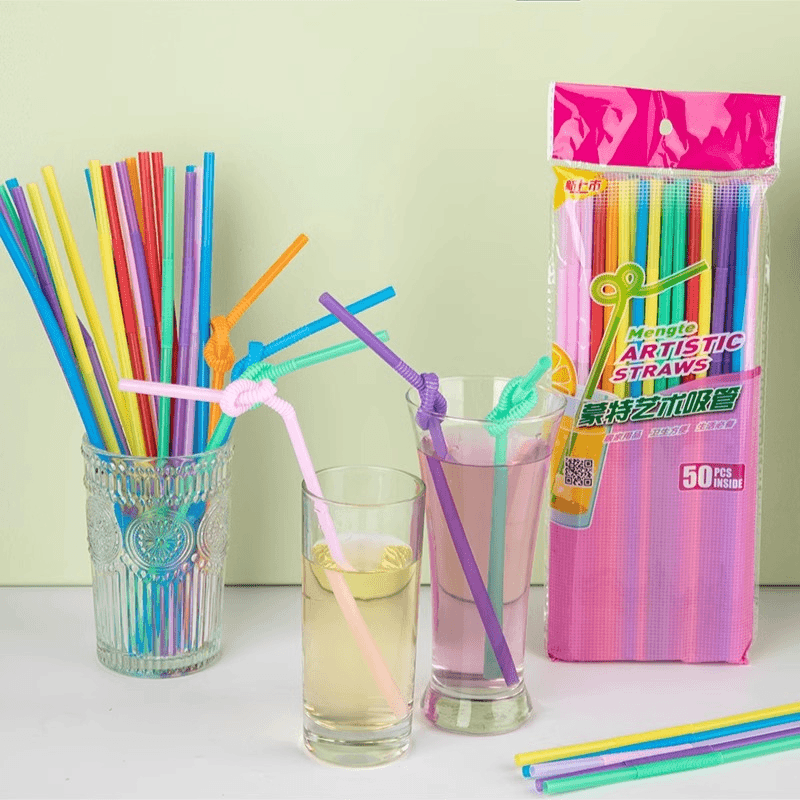 Colorful Food-Grade Beverage Handmade Milk Tea Bar Cafe Children's Art Long Straw Disposable Single Bendable quantity