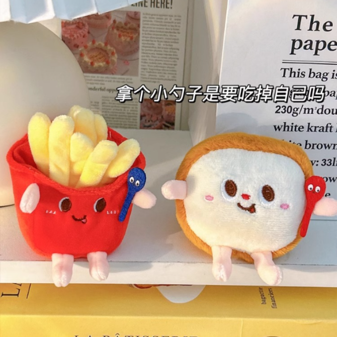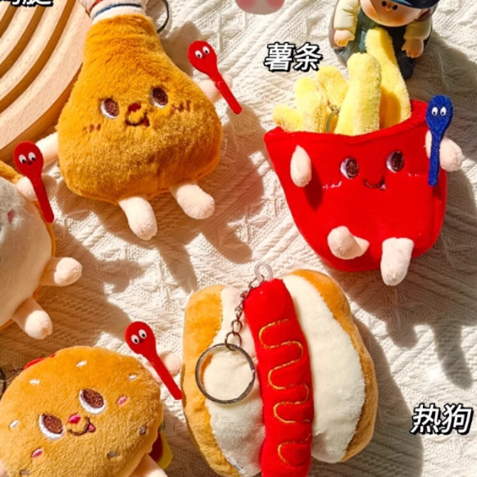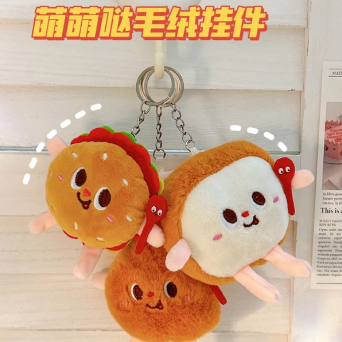 Creative New French Fries and Burger Pendant, Plush Keychain for Couples, Cute Keychain Doll quantity