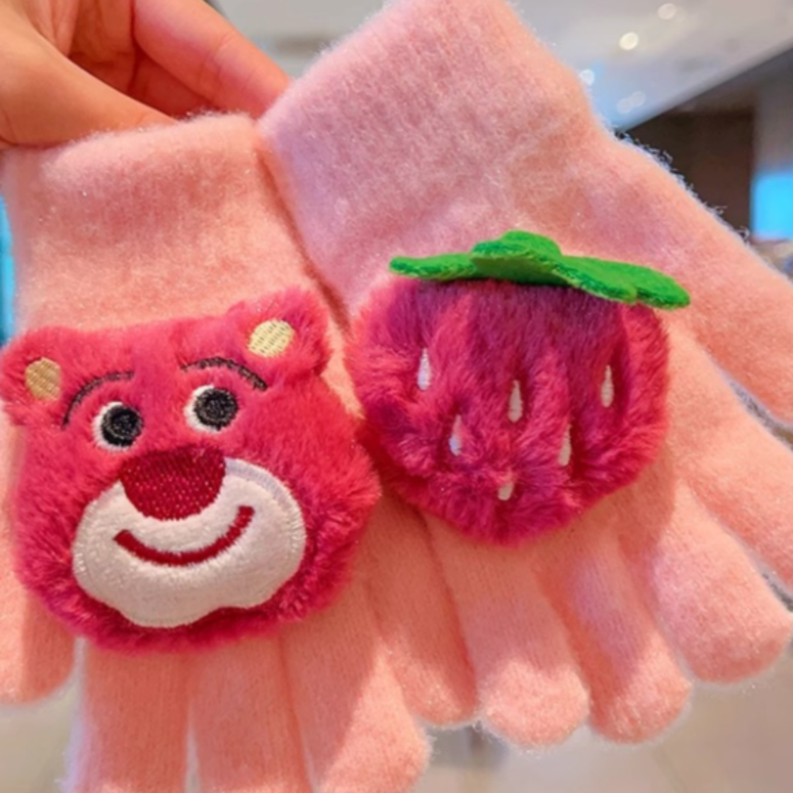 Cute Autumn and Winter Children's Warm Gloves Kindergarten Baby Kids Girls Students Thickened Five-Finger Fashion quantity