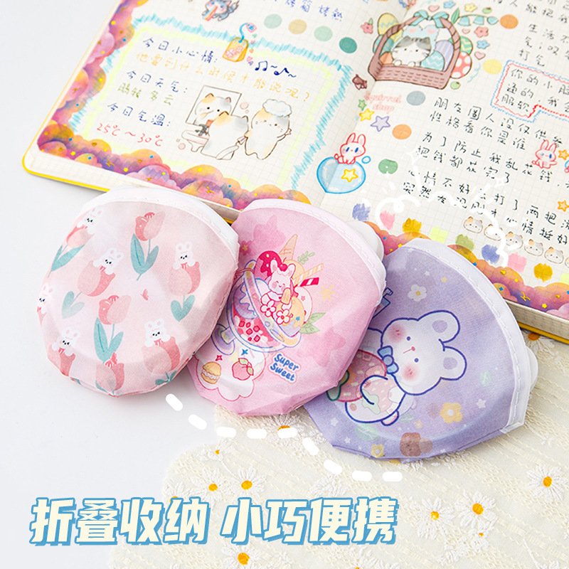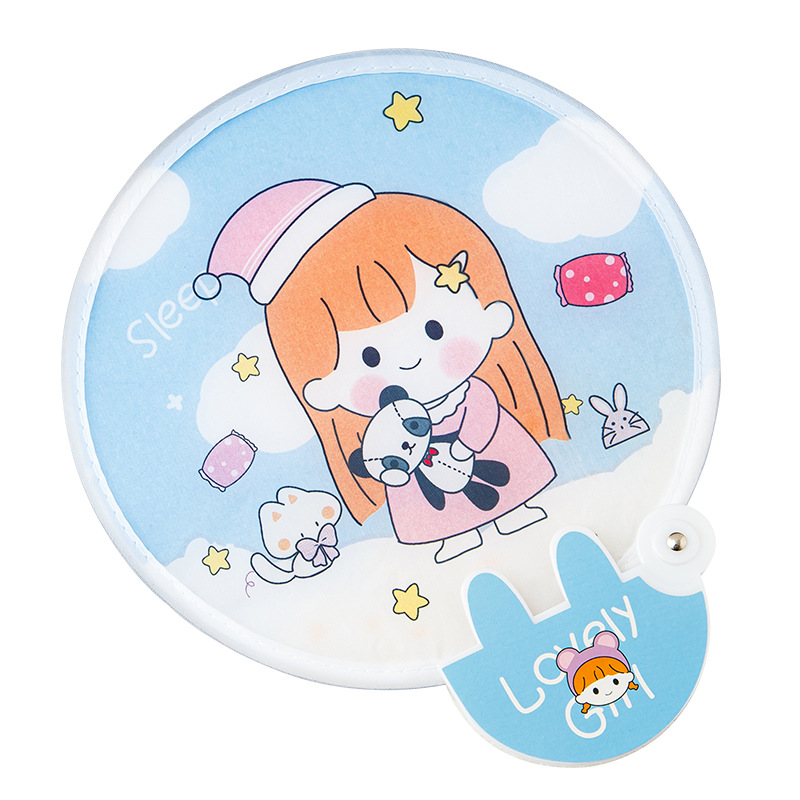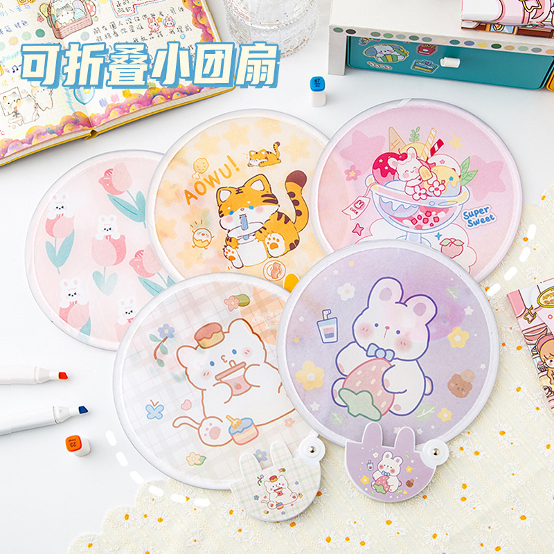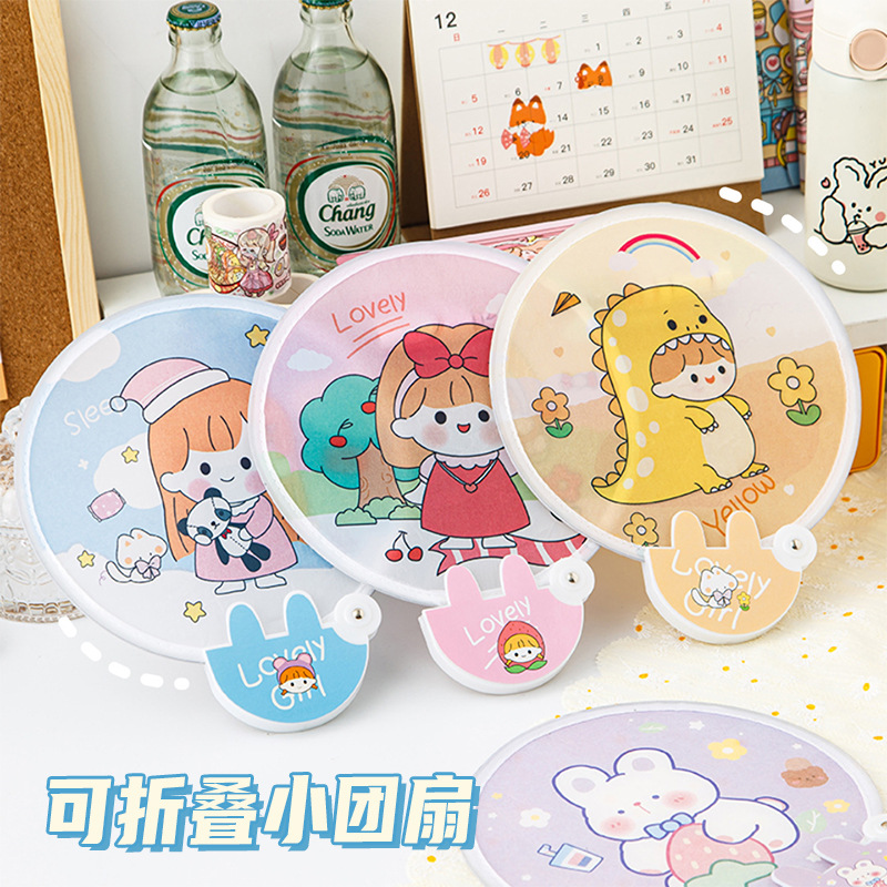 Cute Round Fan for Women Cartoon Mini Fabric Folding Pocket Fan for Children Portable Folding Fan for Summer Use quantity
