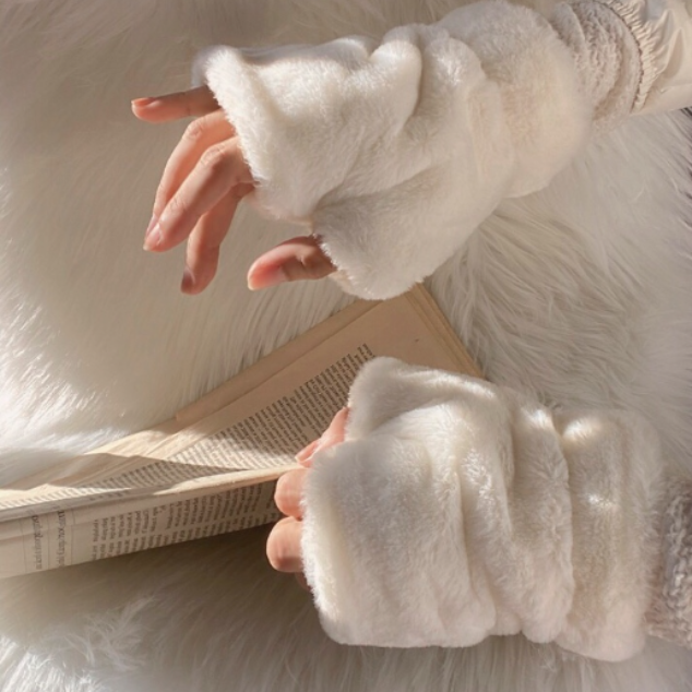 Cute Warm Soft Imitation Rabbit Fur Gloves, Half-Finger for Winter quantity