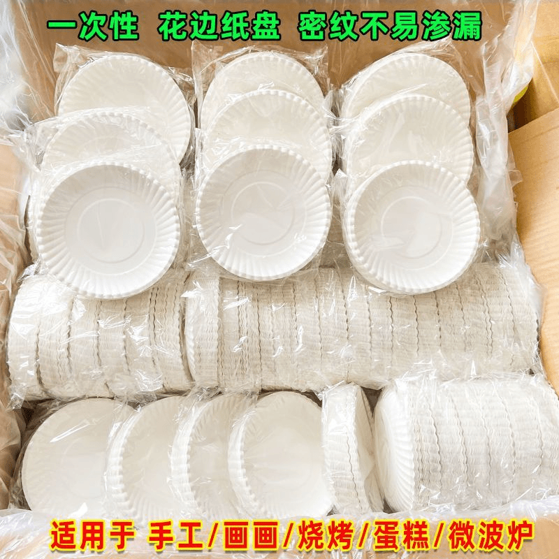 Disposable Paper Plates for Painting, Kindergarten Crafts, Birthday Cakes, Barbecue, Round White Thick Practical quantity