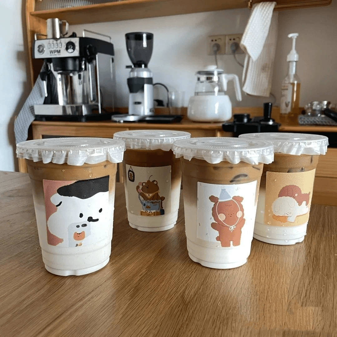 400 мл Стаканы 5 + Крышки для Стаканов 5 + Водонепроницаемая Бумага 5 + Тонкие Соломинки 5