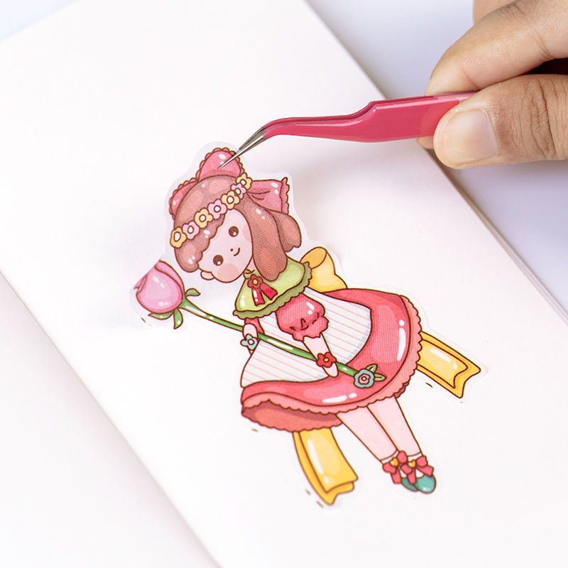 Fresh Macaron Color Metal Tweezers for Planner Stickers Straight and Curved Head Craft Tool Clips quantity