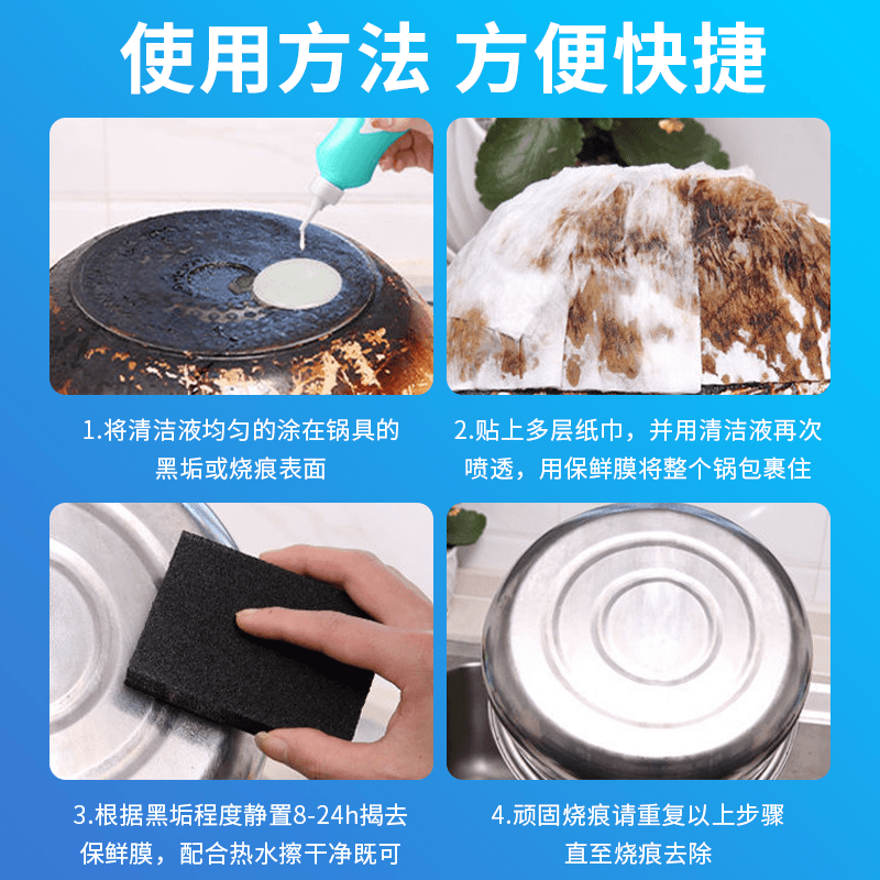 Gel Kitchen Cookware Powerful Stain Remover for Black Pots Stainless Steel Oil Stain Cleaner [Official Genuine Product] quantity