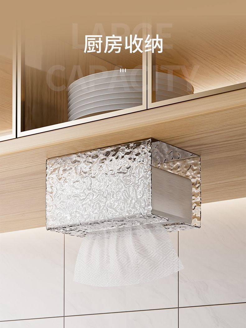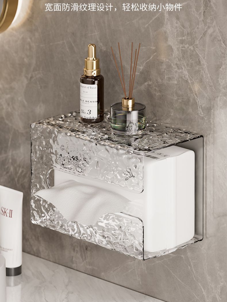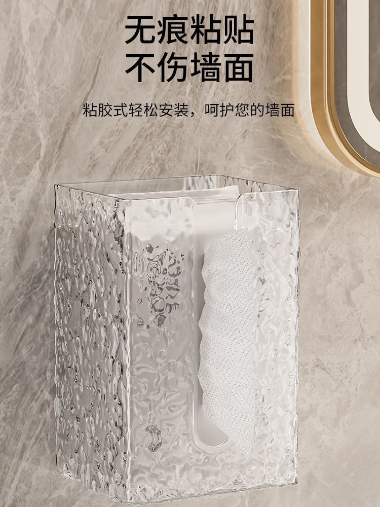 Glacier Pattern Face Towel Storage Box Wall-Mounted Tissue Box Household Light Luxury Style Bathroom Kitchen Upside Down Tissue Box quantity