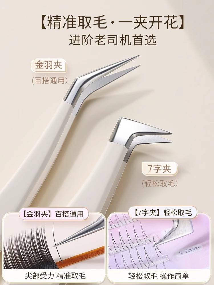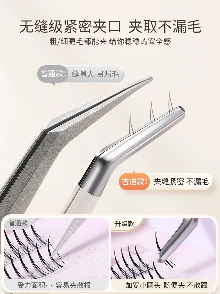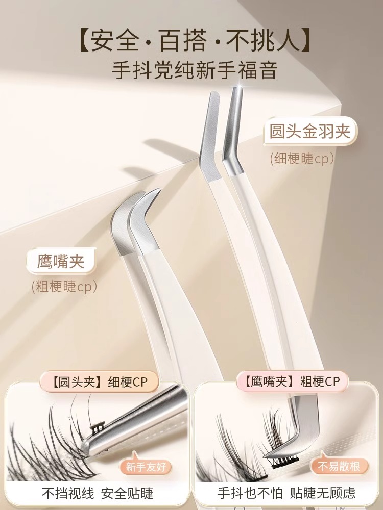 Golden Feather Tweezers for Applying False Eyelashes Double Eyelid Tape Round Head Curved Tweezers quantity