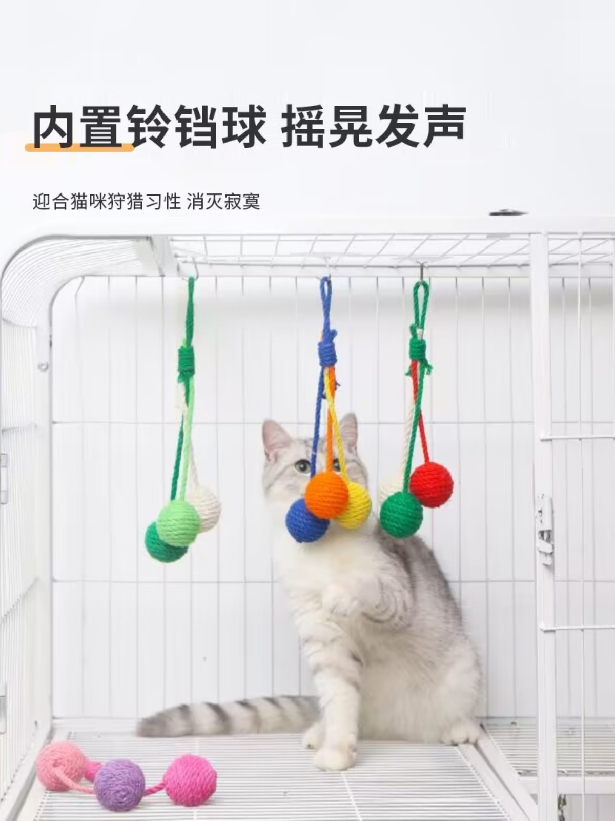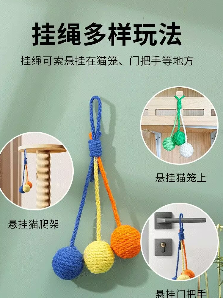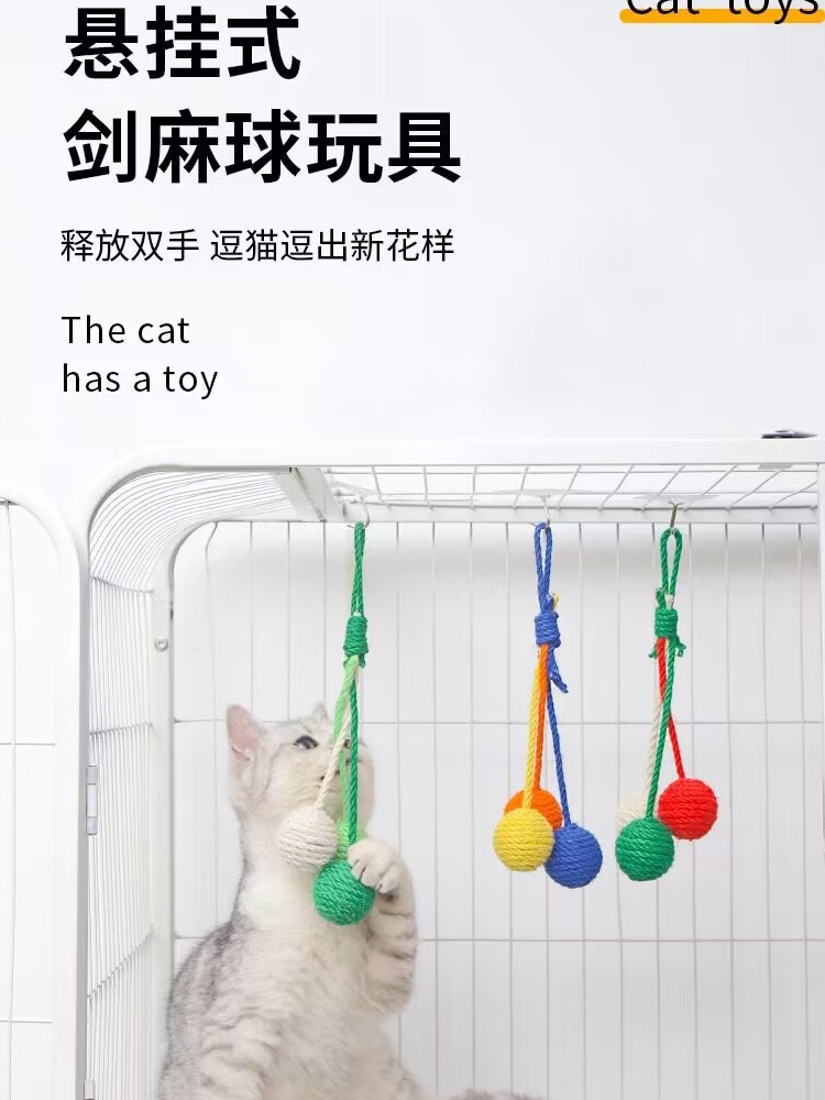 Hanging Jute Ball Cat Toy, Durable Chew Toy for Cats, Self-play and Teeth Grinding Tool quantity