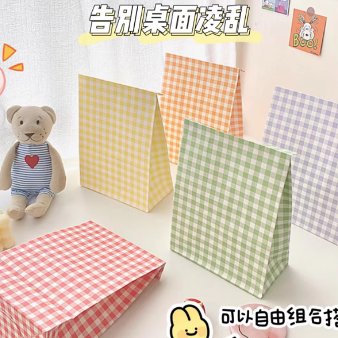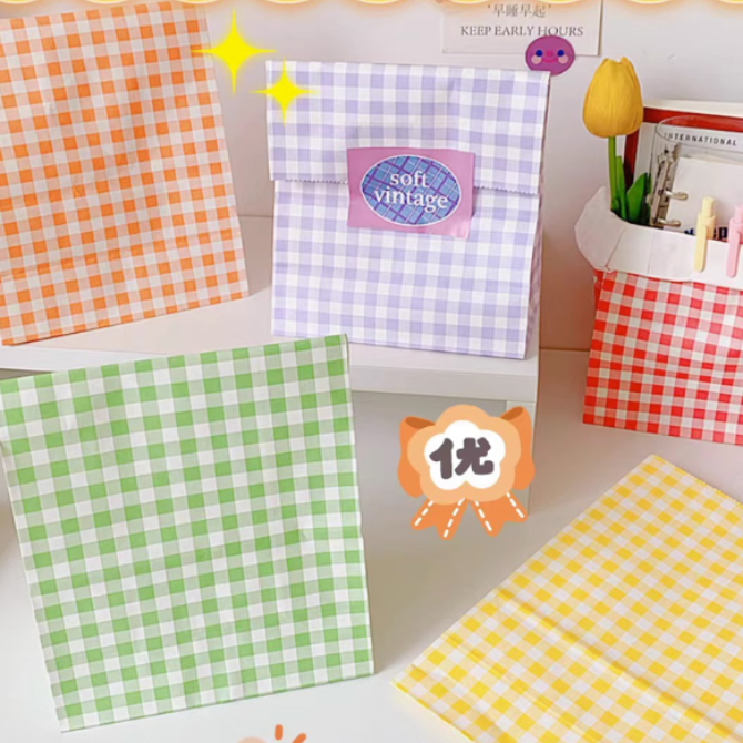 Holiday Small Gifts INS Korean Style Colorful Checkered Kraft Paper Bags Candy Packaging Bags Event Gift Bags Storage Bags quantity