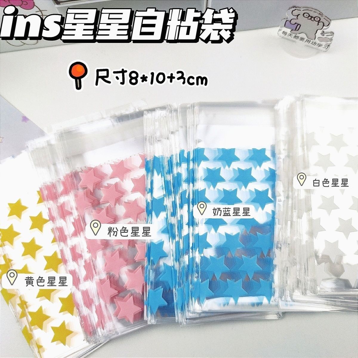 Ins High-Value Packing Essential Gift Bags Self-Adhesive Transparent Bags Colorful Star Self-Sealing Bags quantity