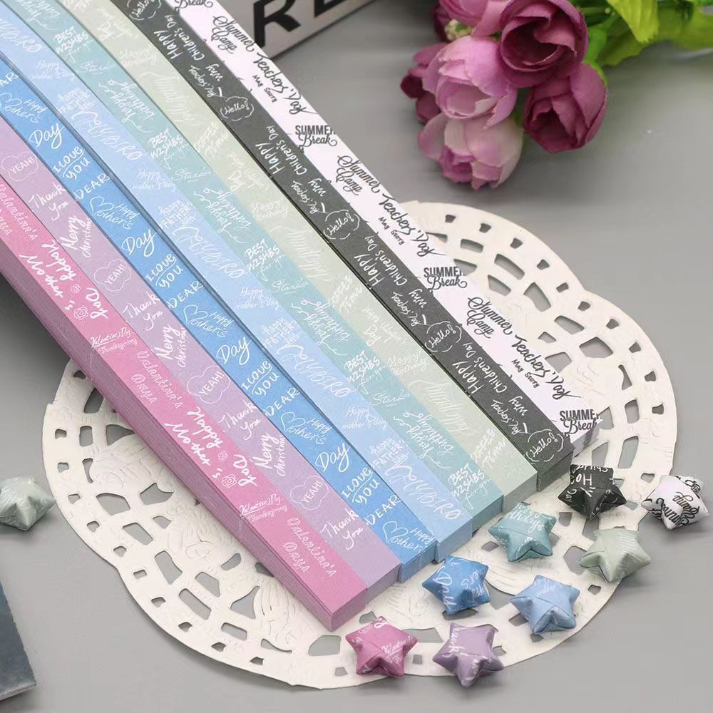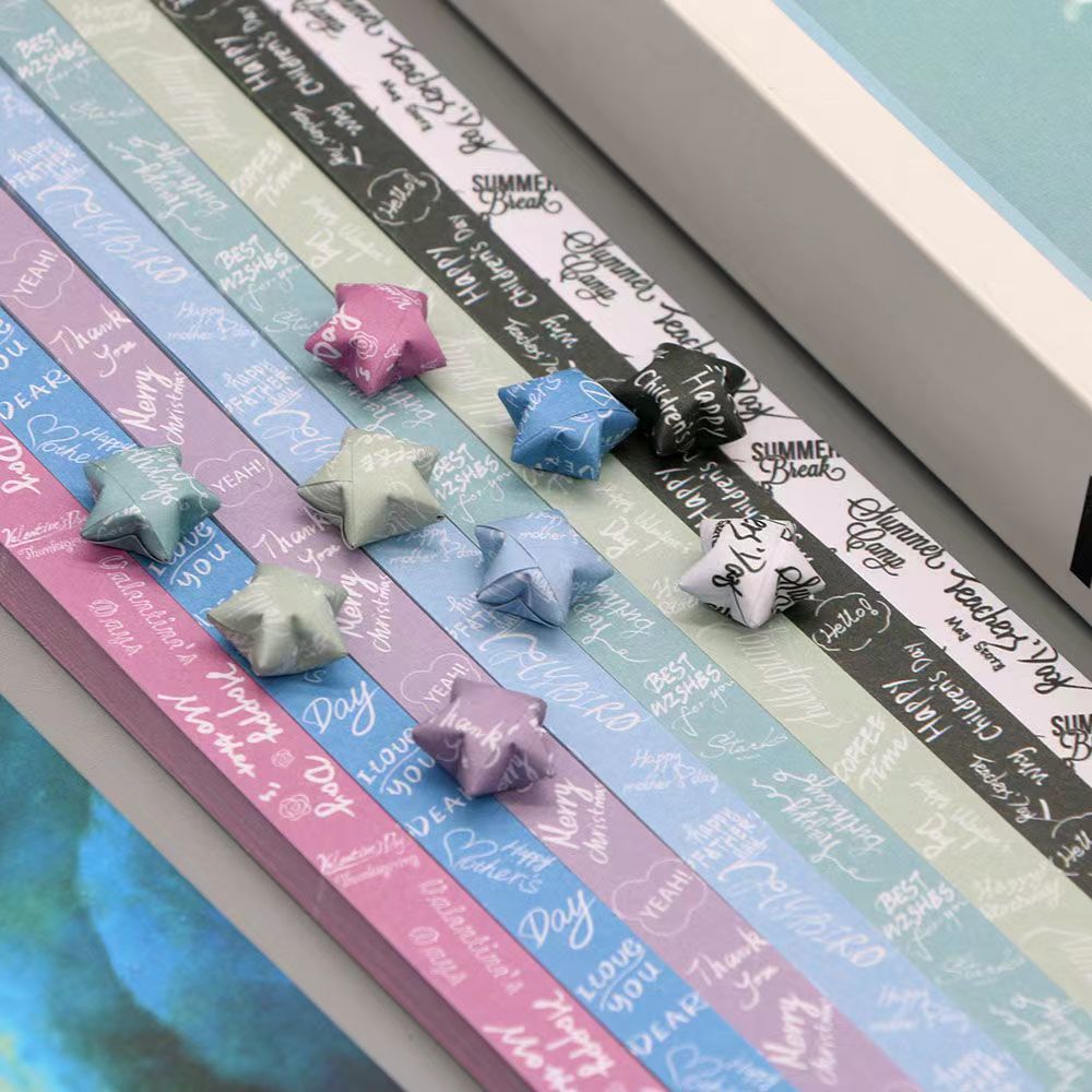 Ins Lucky Star Handmade Paper, Folded Five-pointed Star with Letters, Wish Star Paper quantity