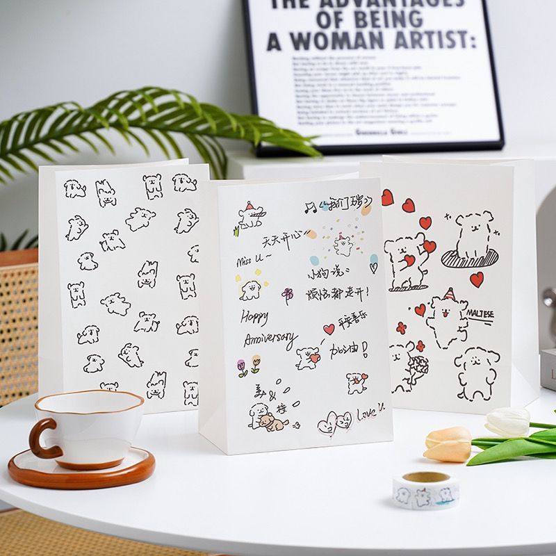 Ins Style Cute Line Dog Paper Bag, Kindergarten Gift, Candy Storage Bag for Holidays quantity