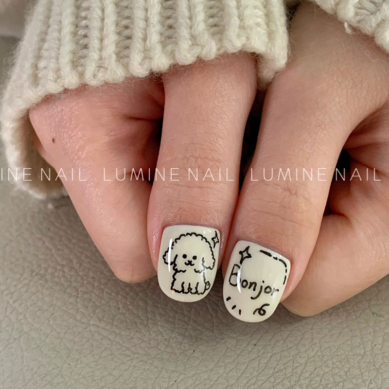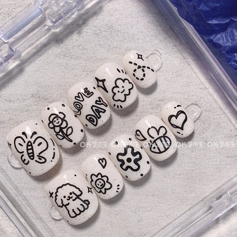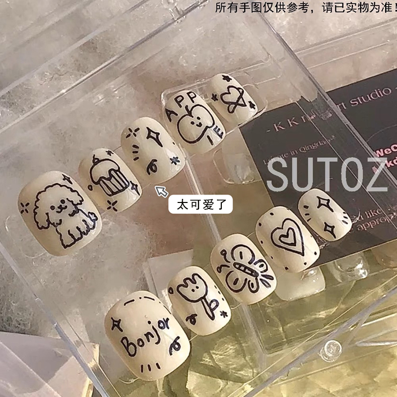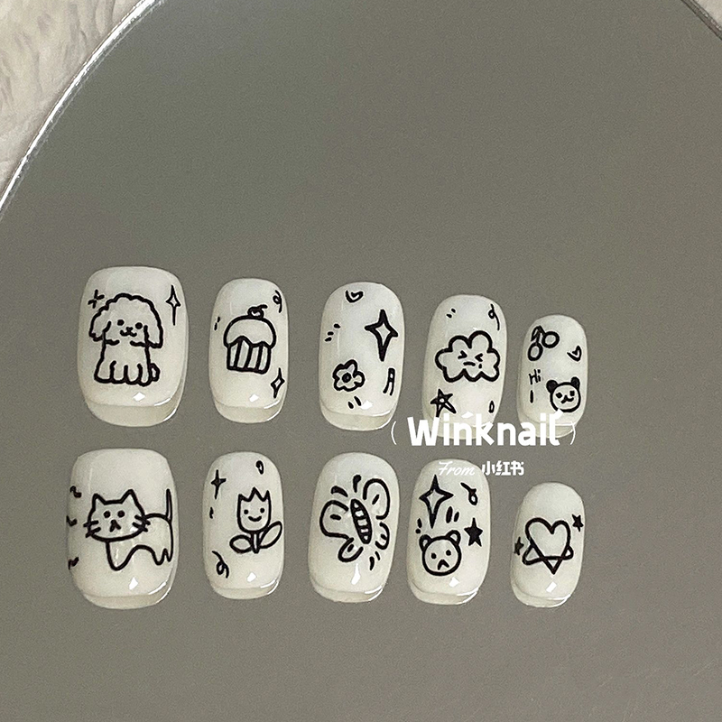 Ins Style Graffiti Nail Stickers Cute Cartoon Fun Curly Dog Cat Butterfly Adhesive Back Stickers Decorative Items quantity