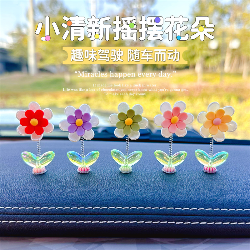 Internet Celebrity Cute Bobblehead Sunflower Daisy Car Ornament Healing Fresh Flower Car Dashboard Decoration quantity