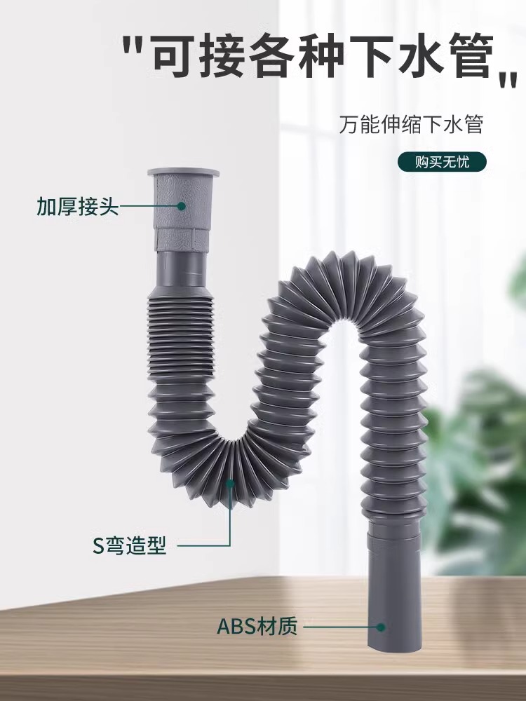 Kitchen Drain Pipe Drainage Pipe Washing Basin Sink Pipe Accessories Downspout Mop Pool Extended Soft Hose Anti-Odor quantity