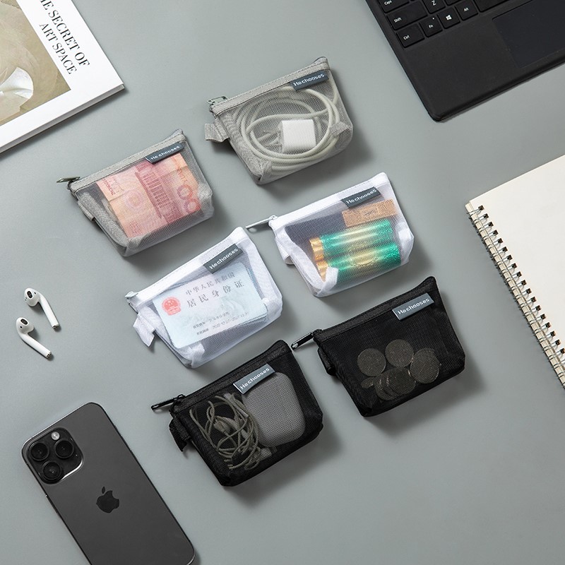 Mini Mesh Storage Bag Portable Coin Purse Student Simple Zipper Lipstick Bank Card ID Key Bag quantity