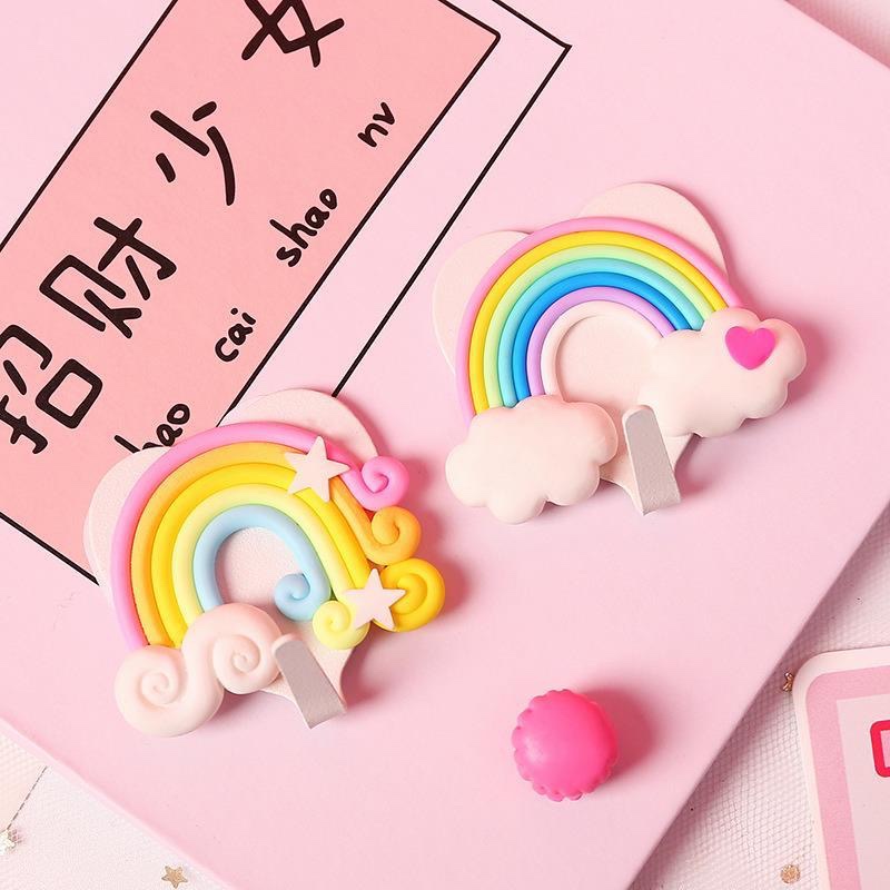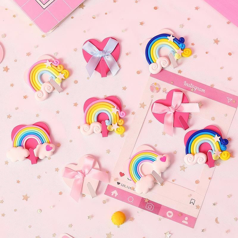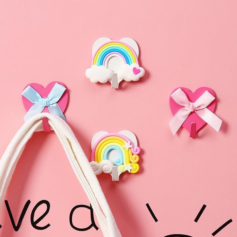 Апельсиновая мечта Радужный бантик клейкий крючок для девочек, милый безгвоздевой крючок для декора комнаты