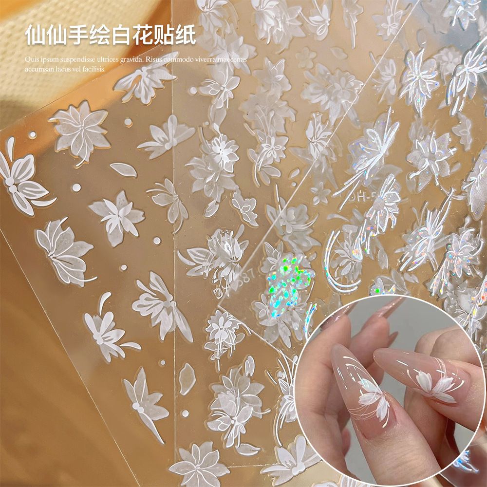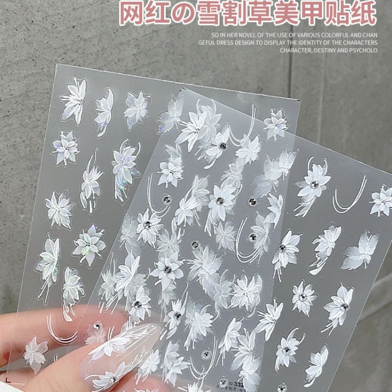 Popular Snow Cutting Grass Hand-Painted White Flower Nail Stickers Super Elegant White Magnolia Flower Thin Adhesive Petal Nail Stickers quantity